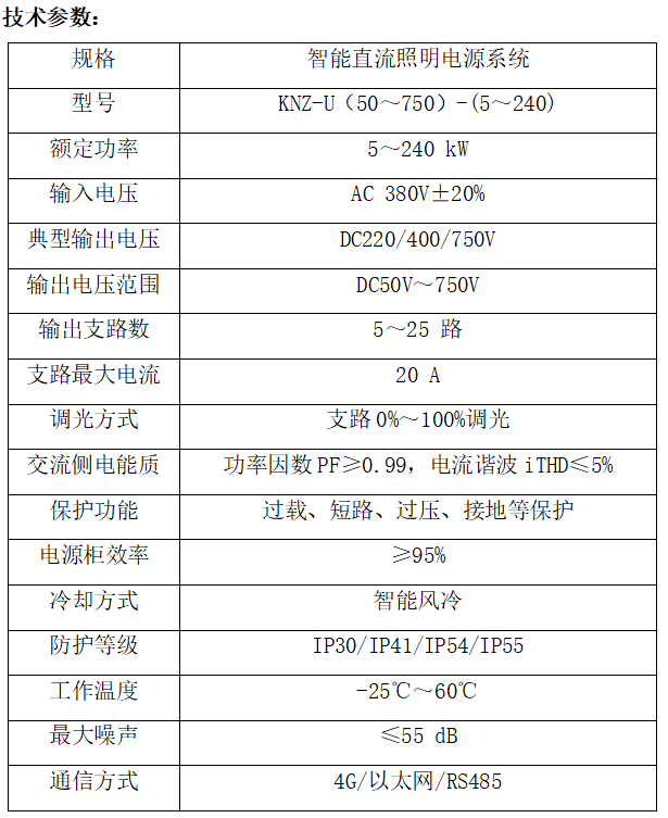 產(chǎn)品說明:智能直流照明電源系統(tǒng)是一款專為直流型照明負(fù)載研制的智能配電產(chǎn)品(以下簡稱電源柜)。電源柜主要由外殼、母線、交流斷路器、直流斷路器、交流浪涌保護(hù)器、直流浪涌保護(hù)器、高頻整流模塊、開關(guān)電源、控制單元、偵測模塊、觸摸屏、照明調(diào)光模塊、絕緣檢測模塊、風(fēng)扇、數(shù)字電表、濾波器等部分集成為一個整體,具有集成調(diào)光功能、安裝調(diào)試方便、運行維護(hù)簡單等特點,是直流供電照明工程的理想選擇。
